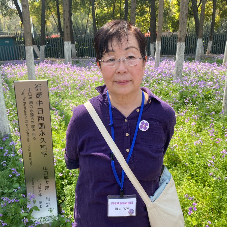在紫金草花园,合唱团团员们自发唱起《和平的花紫金草》。今井治江的眼眶湿润,她此前跟随合唱团来南京12次,每一次演出都不曾缺席。她哽咽地说:“日军曾经在中国犯下了滔天罪行,这些罪行给中国人民带来难以磨灭的痛苦,我一直为此感到无比痛心和愧疚。我通过唱歌表达忏悔,希望向中国人民传达对历史的深刻反思。”