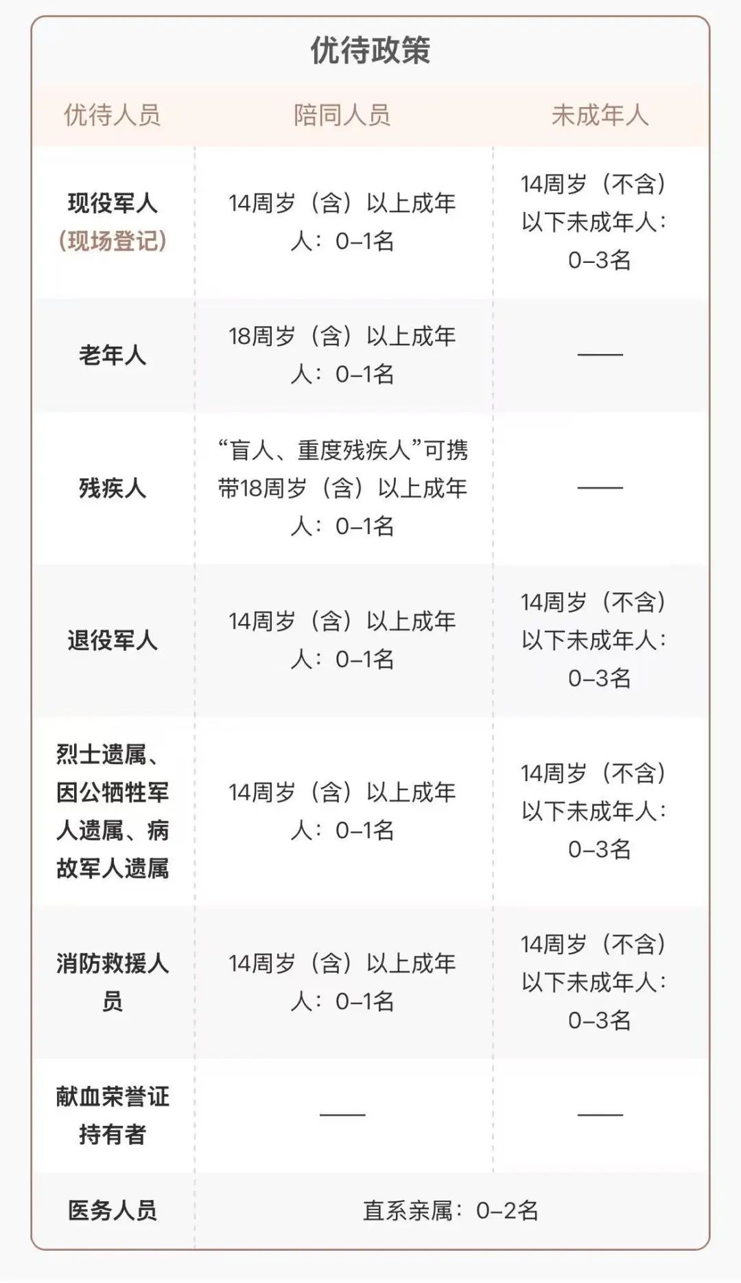 未成年人、优待人群及陪同人员参照管理。