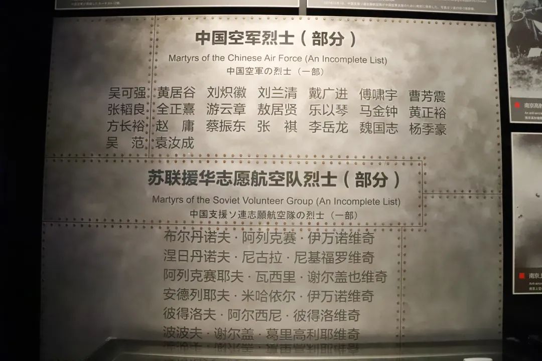 如今,在南京、武汉等苏联援华志愿航空队战斗过的地方,都建有专门的陵园和纪念馆。我馆“南京大屠杀史实展”和“三个必胜”展厅中,有专门介绍苏联援华志愿航空队的内容。