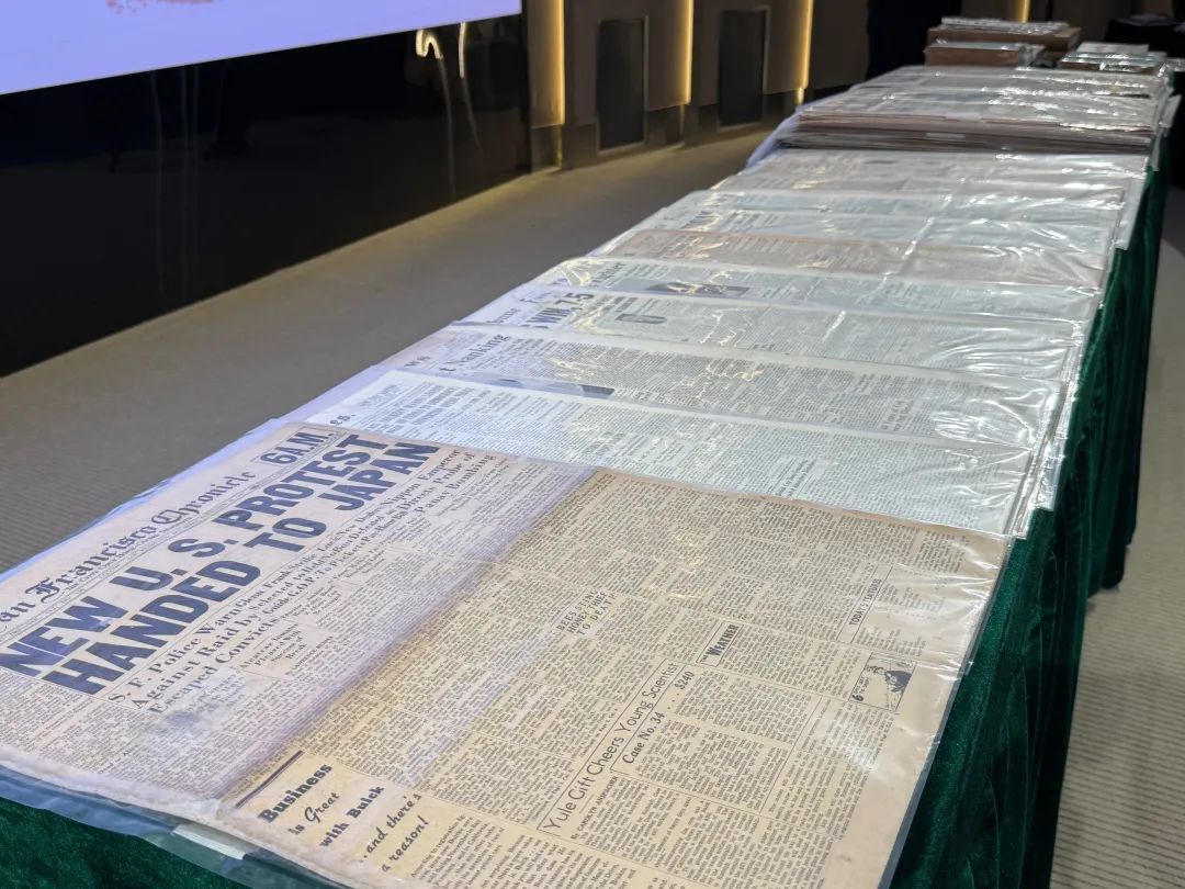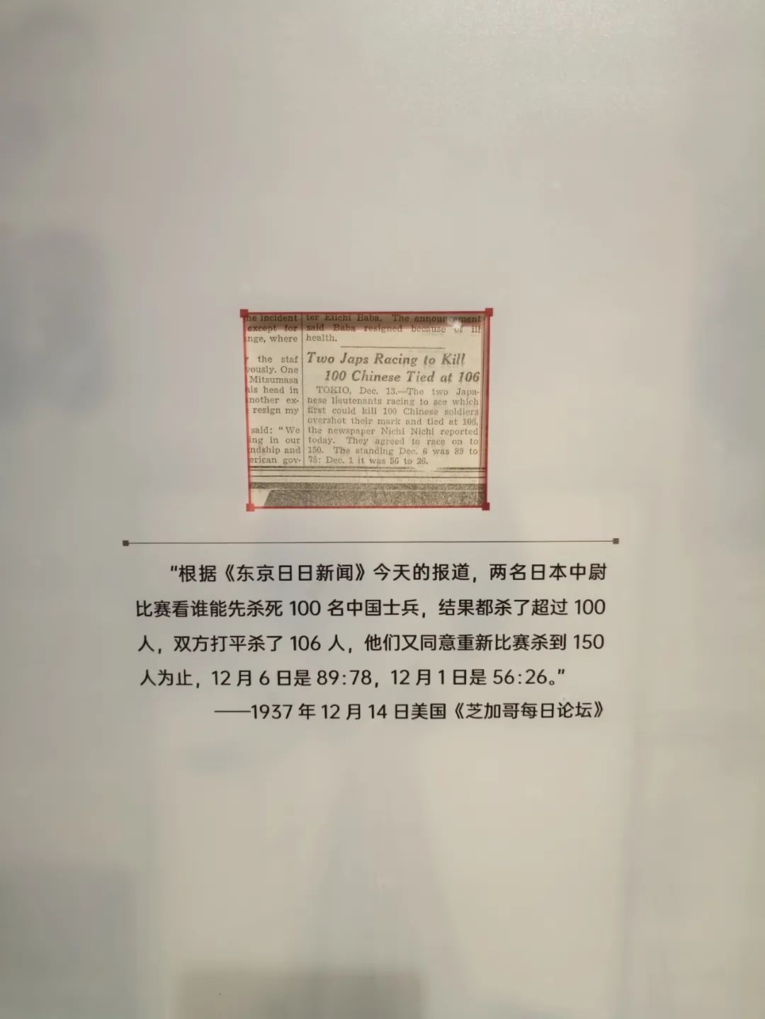 鲁照宁指着展柜内1937年12月14日美国《芝加哥每日论坛》有关“百人斩”的报道说:“第一次见到西方媒体对‘百人斩’杀人竞赛进行了同步报道。我2023年把这份报纸捐赠给纪念馆,现在就被展览出来,让海内外的观众看到,我觉得我做的事情很有价值。让史料回归南京,给纪念馆保管,一方面用于史料研究,一方面让越来越多的观众看到历史真相,我再苦也值得。”