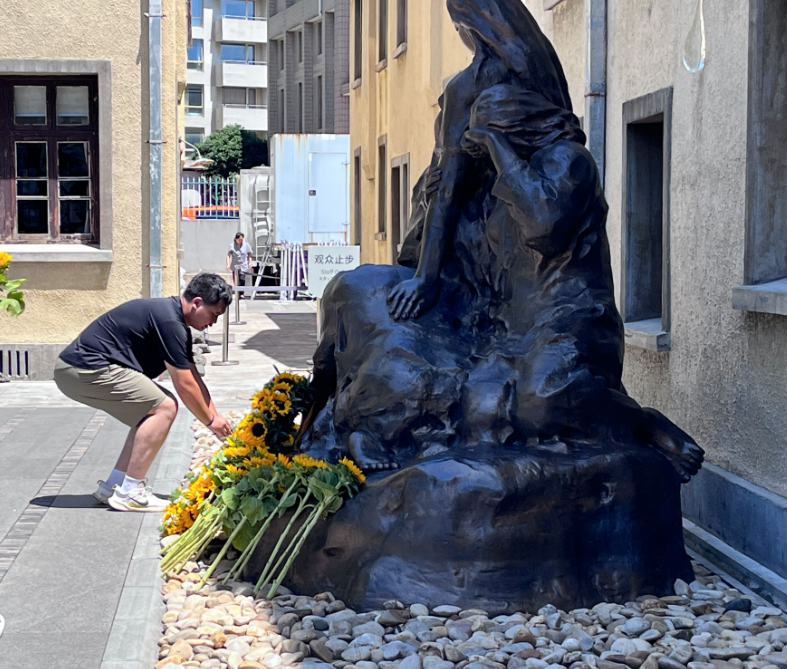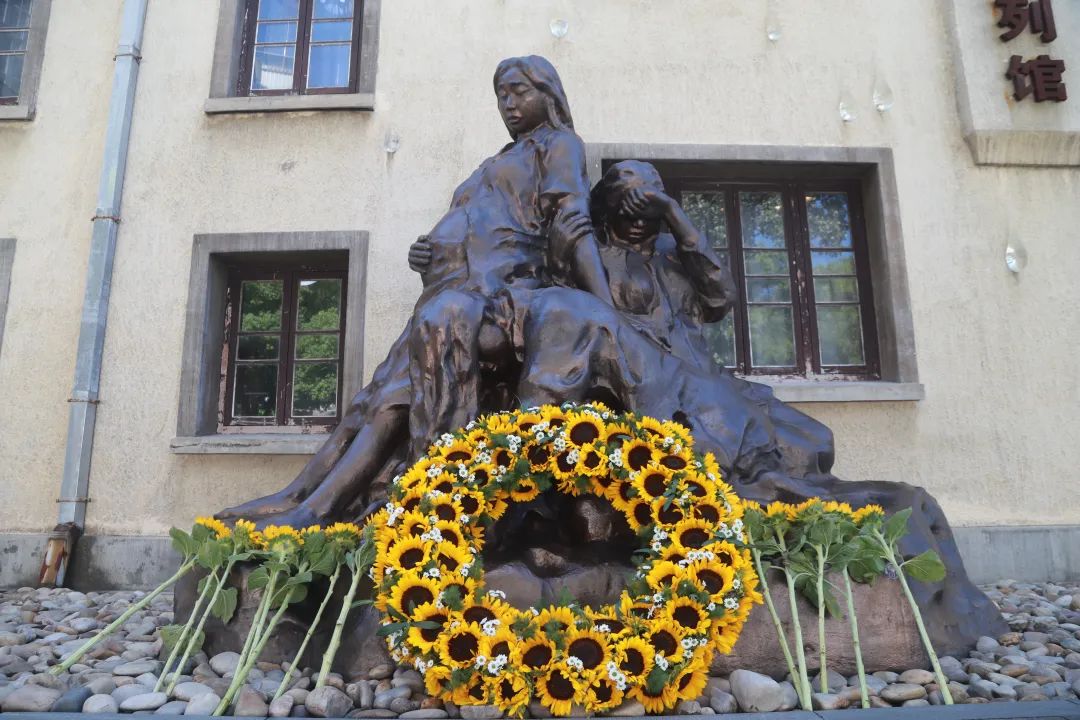今天,“慰安妇”主题雕像前,摆满了象征温暖与光明的向日葵。