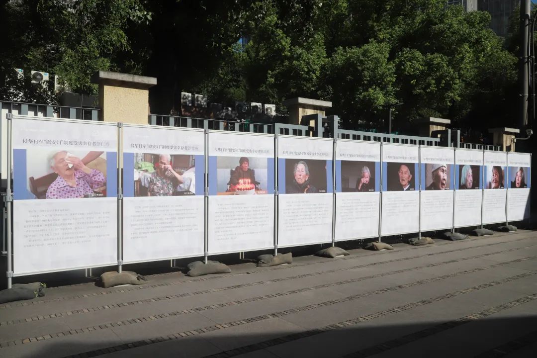 观众驻足在写有日军“慰安妇”制度受害者证言的展板前,那些浸透着血泪的字句展现老人的受难历程,让每一位观众都能感受到那份刻骨的创伤。