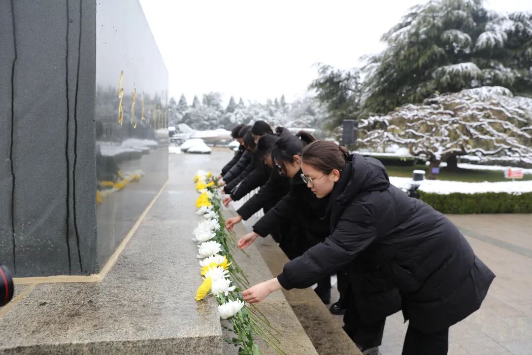 湖北武汉。活动在庄严的国歌声中开始。全体人员肃立默哀,向在民族劫难中不幸罹难的同胞、为民族解放英勇献身的先烈表达深切哀思。全体人员在讲解员引导下参观了《人类的浩劫:1937南京大屠杀》史实展。透过珍贵的历史影像,将那段不容忘却的历史再次呈现眼前。当天下午,该展览送至武汉工程科技学院展出。
