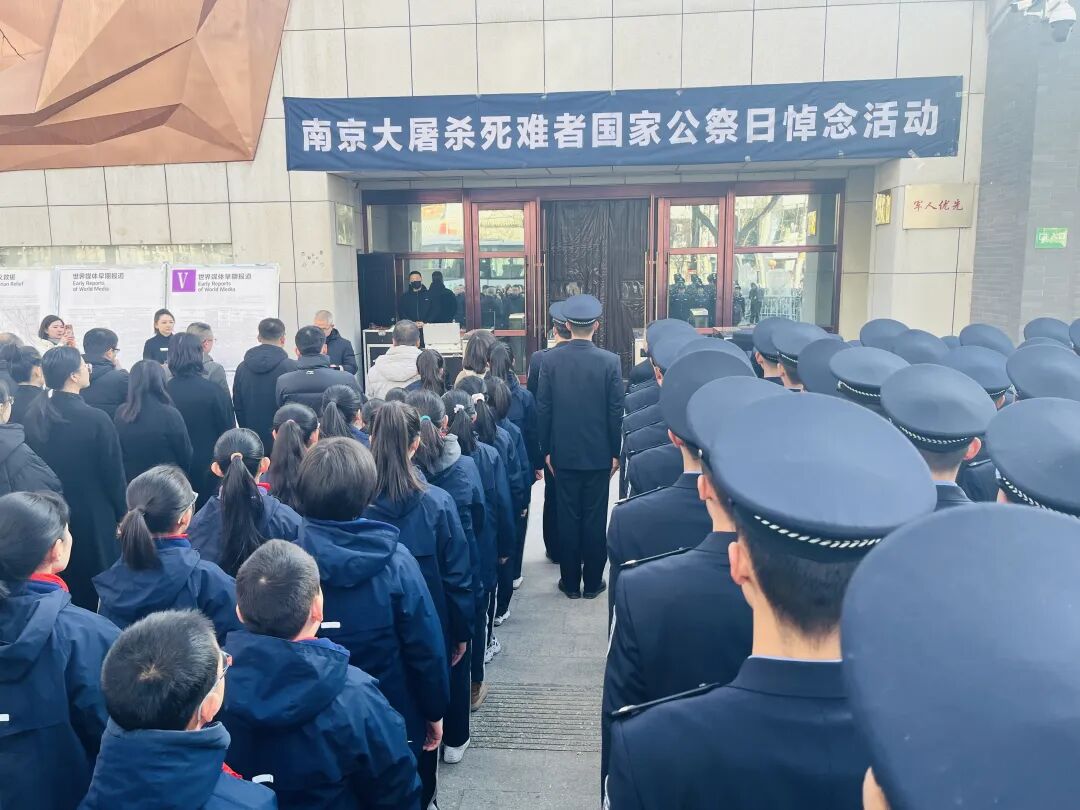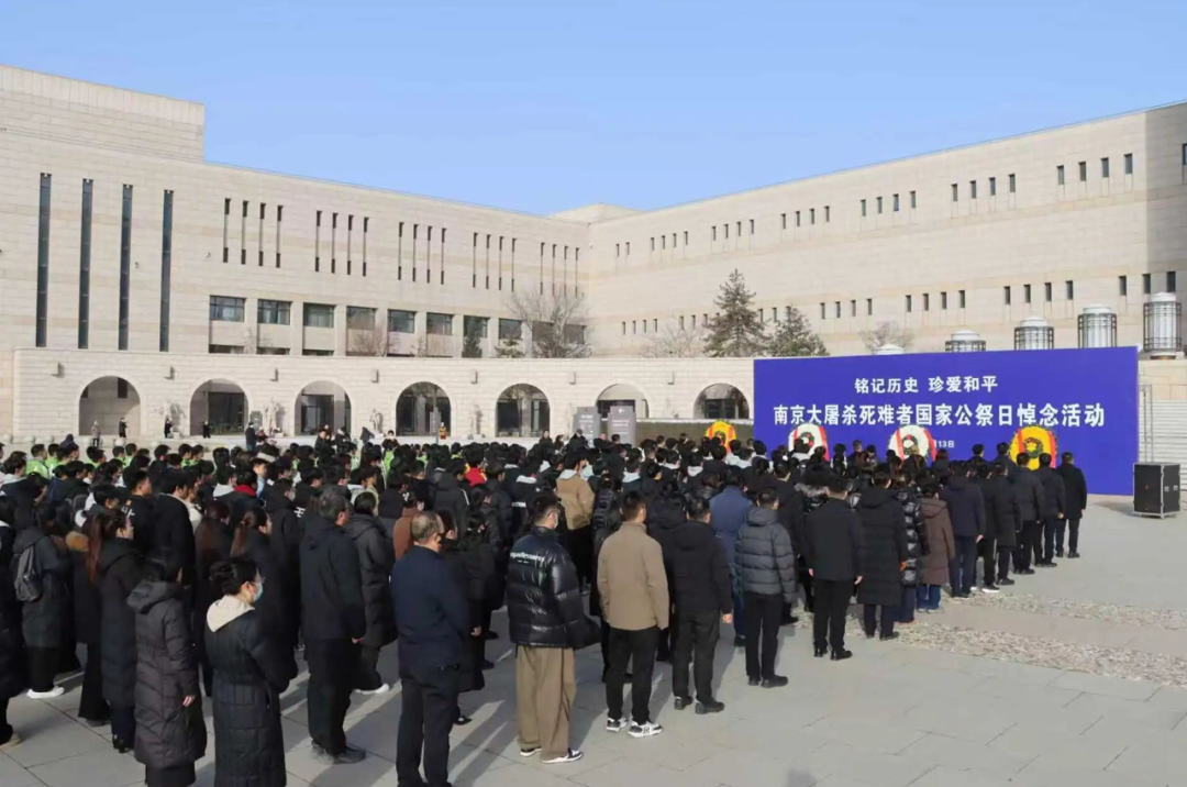 河北邢台。中国人民抗日军政大学陈列馆举行同步悼念活动,陈列馆工作人员和邢台市浆水中学师生代表等300余人参加。全体人员共唱国歌、抗大校歌,学生代表宣读《和平宣言》,大家在和平许愿墙上留下和平祈愿。随后,全体人员参观《人类的浩劫:1937南京大屠杀》史实展。