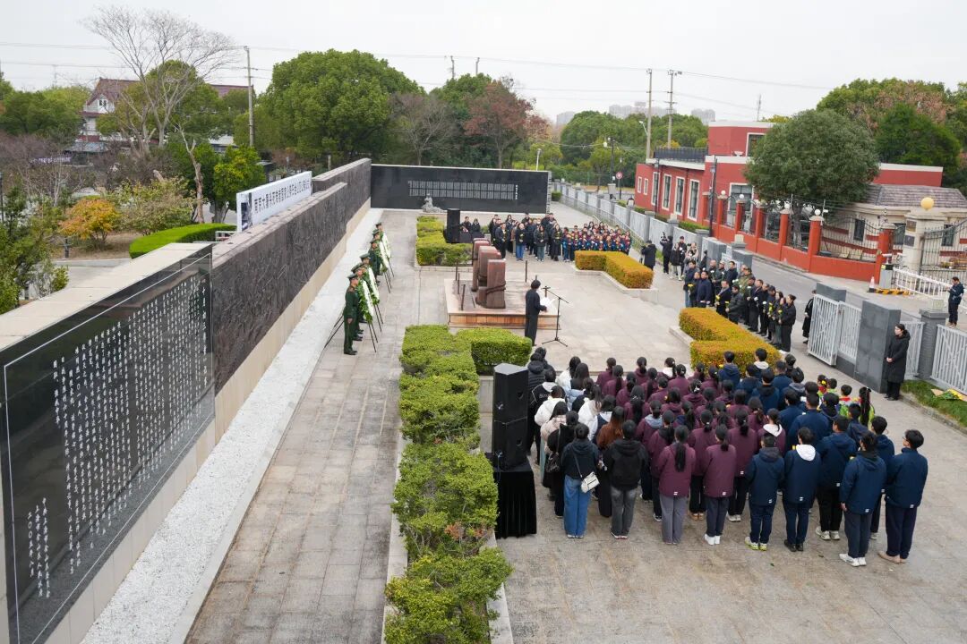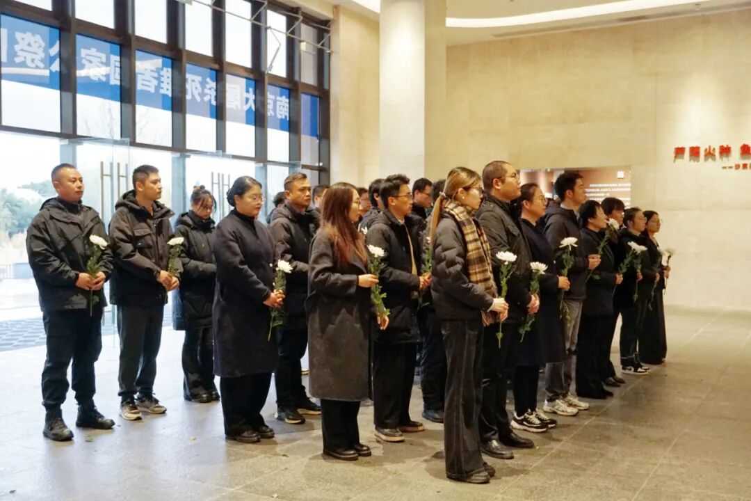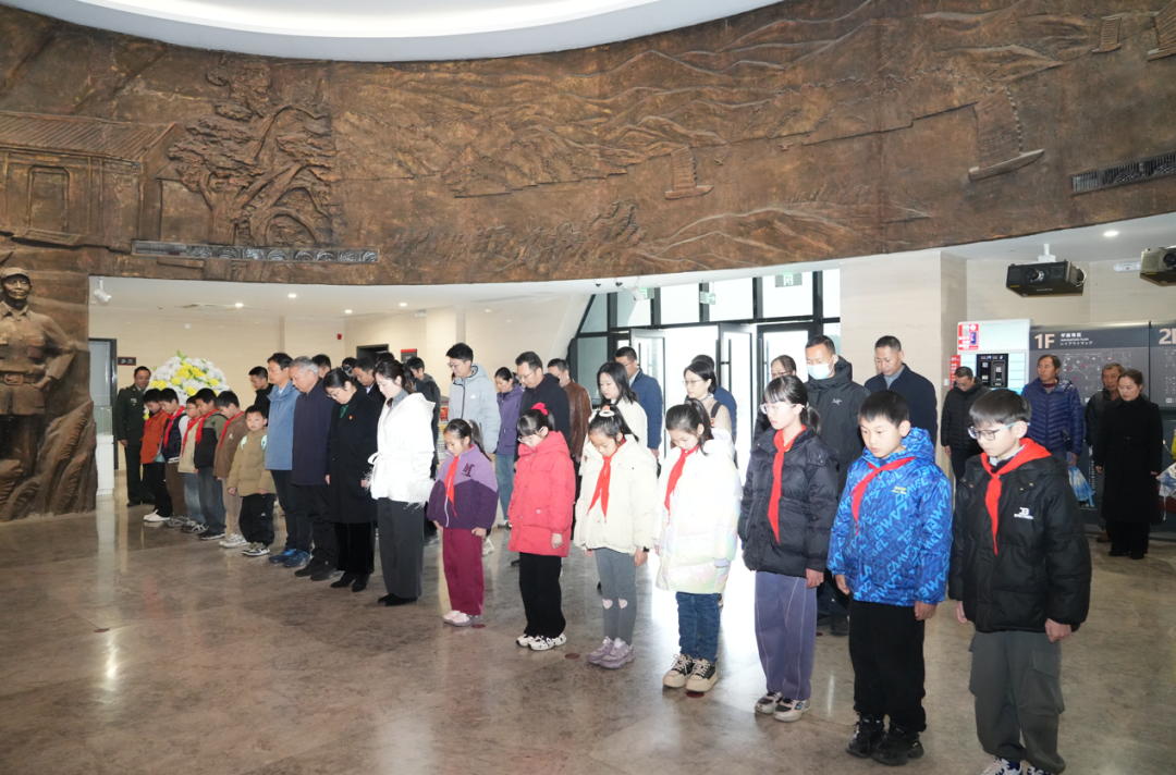 江苏盐城。新四军纪念馆组织社会各界代表百余人通过升国旗、唱国歌、敬献花篮、参观展览等形式,缅怀死难者,寄托哀思。