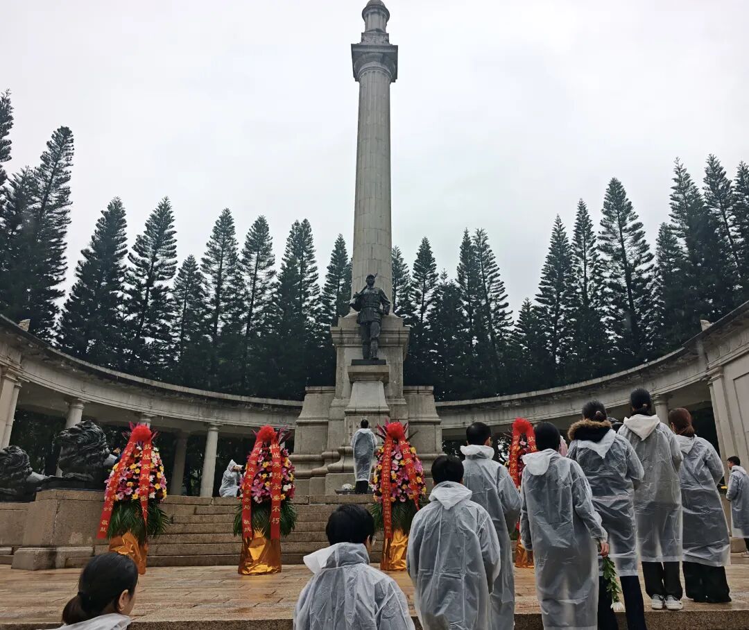 广东广州。全体人员肃立在广州市十九路军淞沪抗日阵亡将士陵园管理中心先烈纪念碑前,向南京大屠杀中遇难的同胞以及抗战英烈默哀。各界代表走向先烈纪念碑敬献花篮。全体人员以鲜花敬英烈,表达崇高敬意与无限哀思。