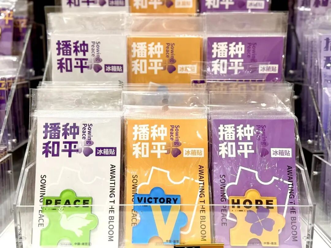 以胜利、和平、希望为设计灵感,将紫金草、和平鸽、《和平》雕塑等经典意象融于一方冰箱贴,既以美感点缀日常,也将深沉的和平祈愿,珍藏于心、常伴身旁。