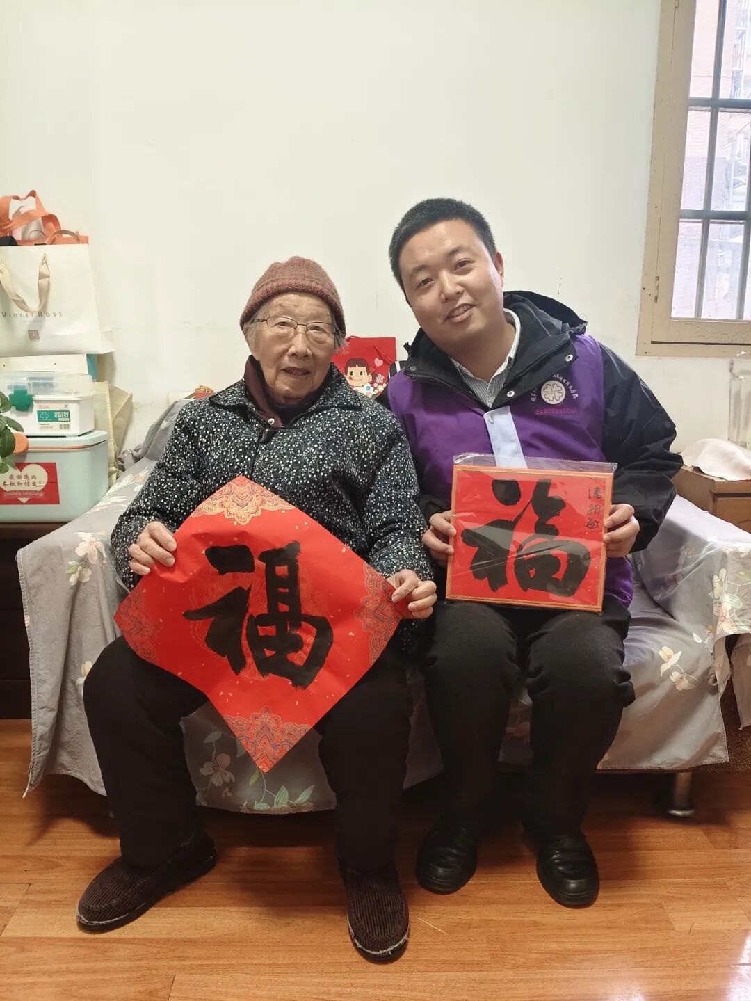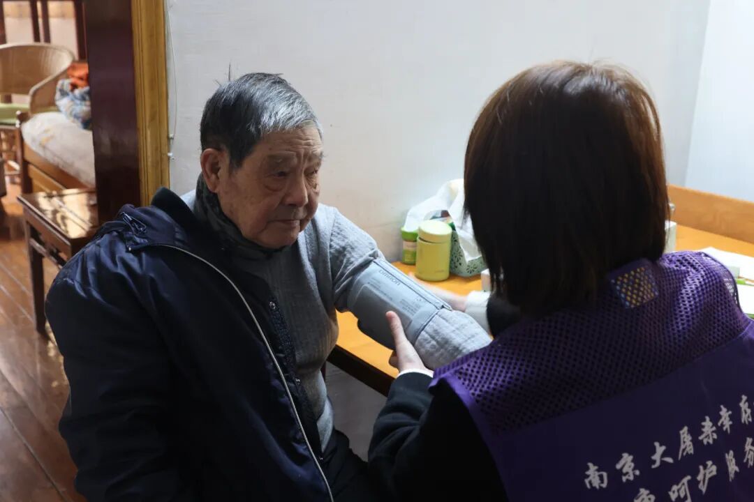 我是江苏省人民医院主管护师戴荣。春节前夕,我和医护志愿者挨家走访南京大屠杀幸存者,为程文英、路洪才等老人持续完善健康监护档案。我详细记录老人的血压血糖状况。程奶奶和路爷爷精神状态不错。我们希望把健康呵护做在前面,为幸存者们健康长寿保驾护航。