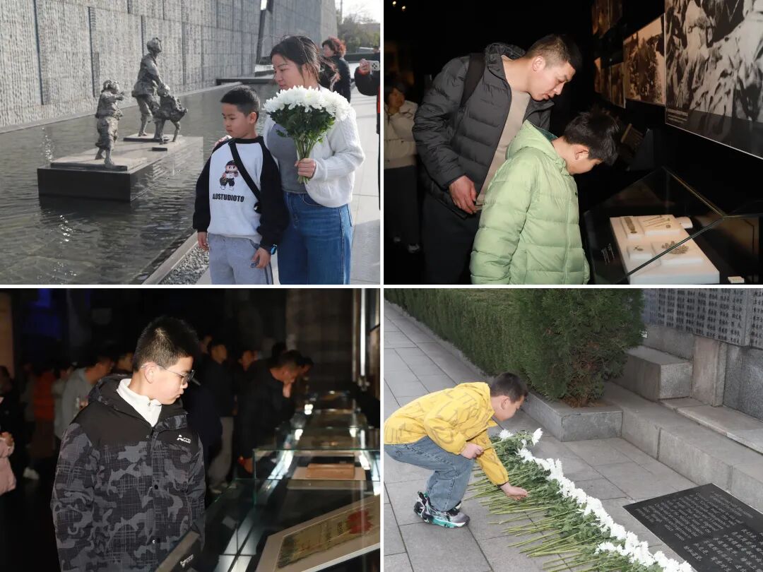 许多家长把纪念馆作为南京之行的第一站。网友“小朱”抵达南京后,第一站就是纪念馆;网友“金大侠”全家三口献花,向遇难同胞献上敬意与缅怀。
