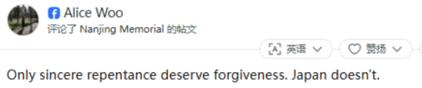 国外网友留言:“唯有真诚的忏悔,才配得上宽恕。日本并未做到。”
