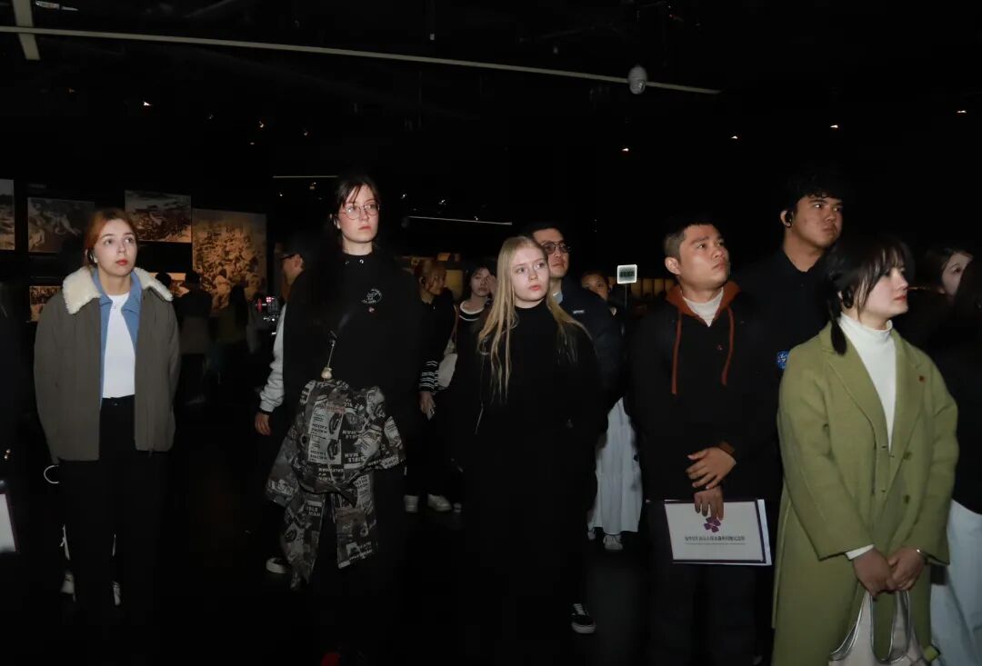 国际青年怀着内心的震撼走进“南京大屠杀史实展”,大家聆听讲解,目光中满是触动与共情。
