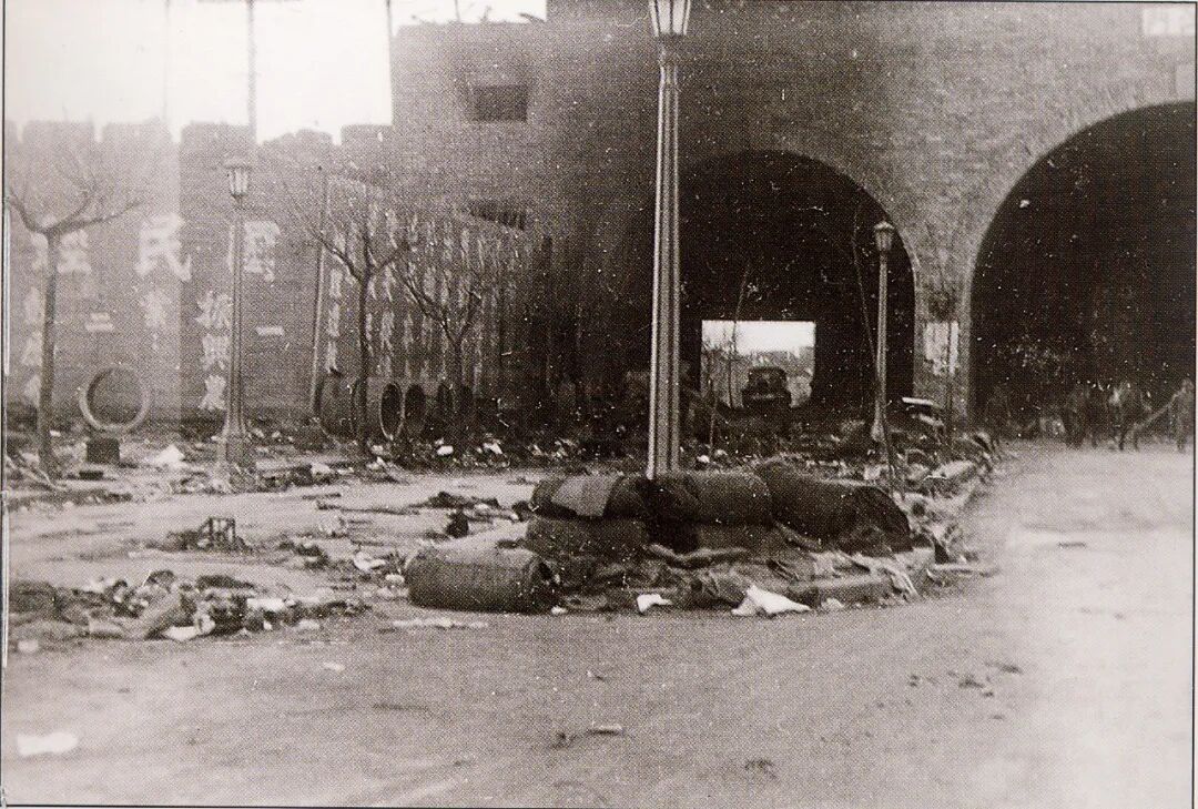 通往下关方向的挹江门。此处只有一个边门可以通过。城门洞一米多高的尸体,与修筑路障用的沙包结结实实地叠在一起,要想乘车去下关,都得从上面开过去——采自《拉贝日记》
