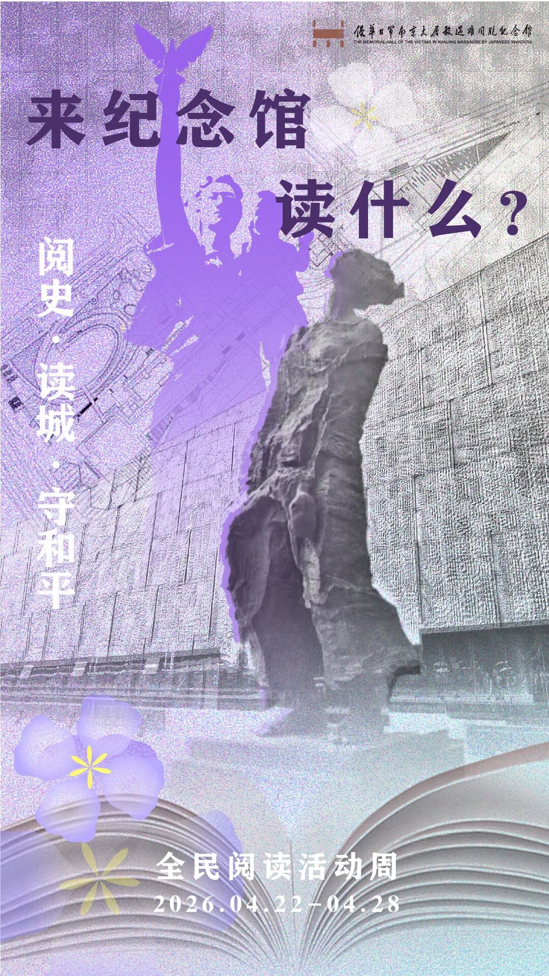 4月第4周为“全民阅读活动周”。4月22日至28日,我馆将举办“以读铭史 以行传志”全民阅读活动周系列活动。在这里,阅读不止于翻动书页——更是阅史,在字里行间触摸民族的伤痕与脊梁;读城,从一砖一瓦中感受南京这座城市的坚韧与重生;守和平,以史为鉴,将祈愿化作前行的力量。邀您在阅读中回望历史,厚植家国情怀,凝聚和平力量。