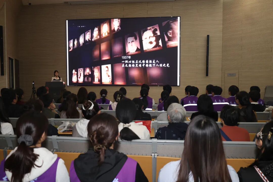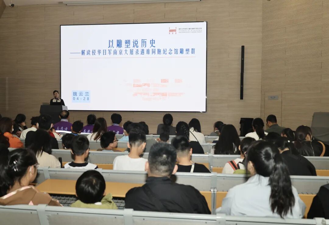4月28日上午,我馆副研究馆员魏云兰带来《以雕塑说历史——解读侵华日军南京大屠杀遇难同胞纪念馆雕塑群》专题讲座。讲座围绕纪念馆整体布局、“和平之舟”建筑造型、雕塑广场等部分,深度解读雕塑与建筑承载的时代内涵,带领观众读懂凝固在空间里的厚重历史记忆。现场座无虚席,氛围浓厚,吸引大批观众到场聆听。来自杭州的三年级学生赖依一有感而发:“刚进馆时,我便留意到雕塑广场的那些雕塑。通过这场讲座,我终于读懂每一座雕塑背后的过往与故事,也对这段沉痛历史有了更加深刻的认知与理解。”